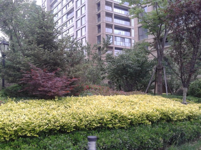 綠城·紫薇廣場風(fēng)華苑北區(qū)室外景觀工程位于膠州市海口區(qū)的核心位置,是膠州市最核心的地段,地理位置優(yōu)越,北靠云溪河,南臨膠州市委市政府,緊鄰三里河公園和膠州市三大中心,即會展中心、文化中心和體育中心。該項目景觀工程總面積約23500㎡(含外圍)。其中,綠化面積約計 15200㎡,土建面積8300㎡。綠化率達(dá)65%,工程造價為1057.5萬。工程自2013年8月25日開工,于2013年12月26日竣工。該工程的建設(shè)單位為青島綠城膠州灣房地產(chǎn)開發(fā)有限公司;設(shè)計單位為青島綠城建筑設(shè)計有限公司;施工單位為浙江三葉園林建設(shè)有限公司。