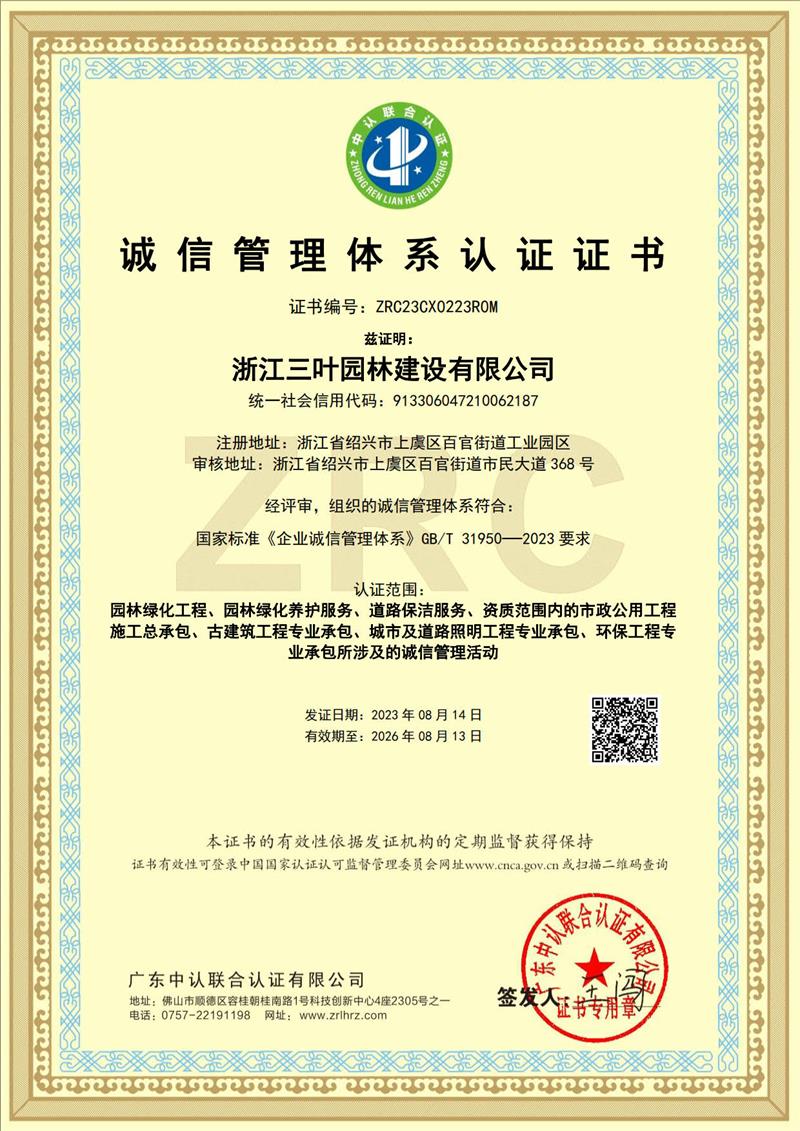 8月9日至11日,廣東中認(rèn)聯(lián)合認(rèn)證的專家一行1人蒞臨三葉園林進(jìn)行現(xiàn)場(chǎng)復(fù)審認(rèn)證。專家依據(jù)企業(yè)誠信管理體系文件、法律法規(guī)和技術(shù)標(biāo)準(zhǔn)、現(xiàn)場(chǎng)等相關(guān)要求,對(duì)公司一年來的誠信體系運(yùn)行情況,全流程進(jìn)行了細(xì)致審查。經(jīng)過4天的認(rèn)證復(fù)審,專家一致認(rèn)為三葉園林誠信管理體系運(yùn)行穩(wěn)定有效、符合誠信管理體系標(biāo)準(zhǔn),同時(shí)對(duì)進(jìn)一步優(yōu)化提升管理體系建設(shè)提出了寶貴建議。